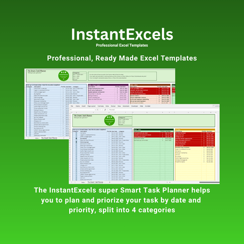 The Smart Task Planner will then automatically arrange your task by category, date and priority for you. It will aslo highlight overdue tasks in red and tasks due today in bold.