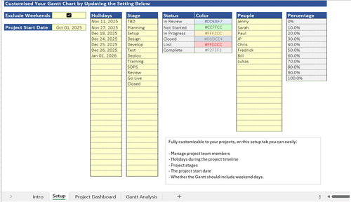 Do you need a Gantt anaylsis for your new project? Why take the pain and waste valuable time creating it yourself when you can use ours to be up and running in minutes?