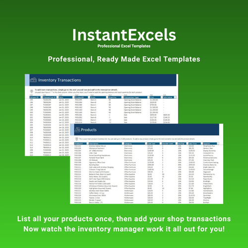 With support for up to 10 stores and thousands of transactions and products, our Excel Inventory & Shop Manager template has you covered.