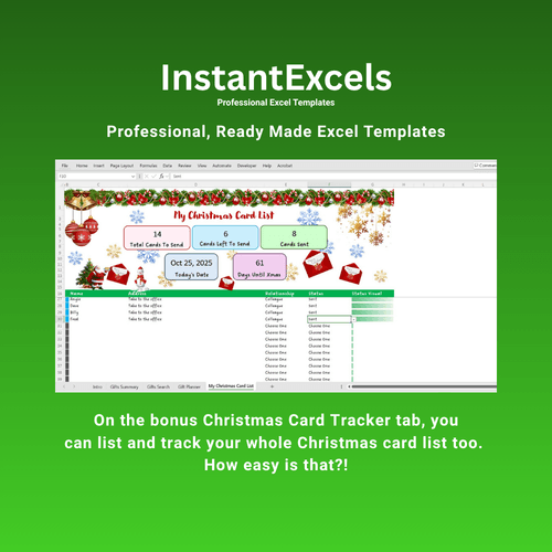 ✔ Track your Xmas Card list too with the bonus My Christmas Card List tab.