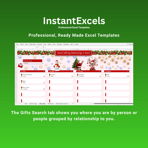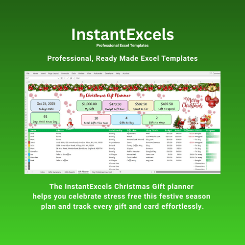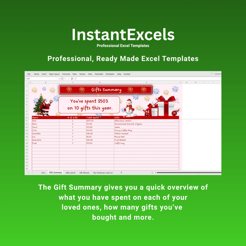 Christmas Gift Planner | Gift Tracker | Excel Template
